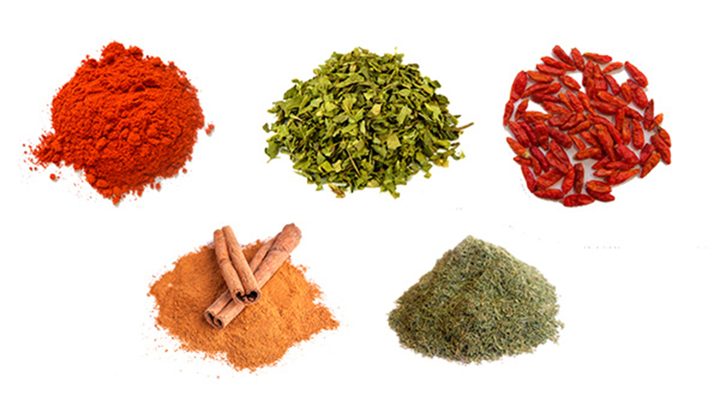 especias de Ajo, cebolla, curcuma, jengibre y canela en polvo